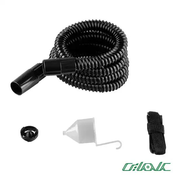 همراه این محصول دو نازل با قطر "1.8" و "2.6" میلیمتر، یک شلنگ 1.8 متری و نیز یک قیف شاخص غلظت رنگ وجود دارد که با توجه به نوع پروژه و محیط رنگآمیزی، می توان غلظت رنگ را کنترل نمود و سپس از نازل مناسب برای انجام کار استفاده نمود. همچنین علاوه بر این محصولات یک بند شانهای وجود دارد که کاربر برای روی شانه قرار دادن ابزار برای راحتی بیشتر آن را وصل میکند و بر روی شانه میاندازد.